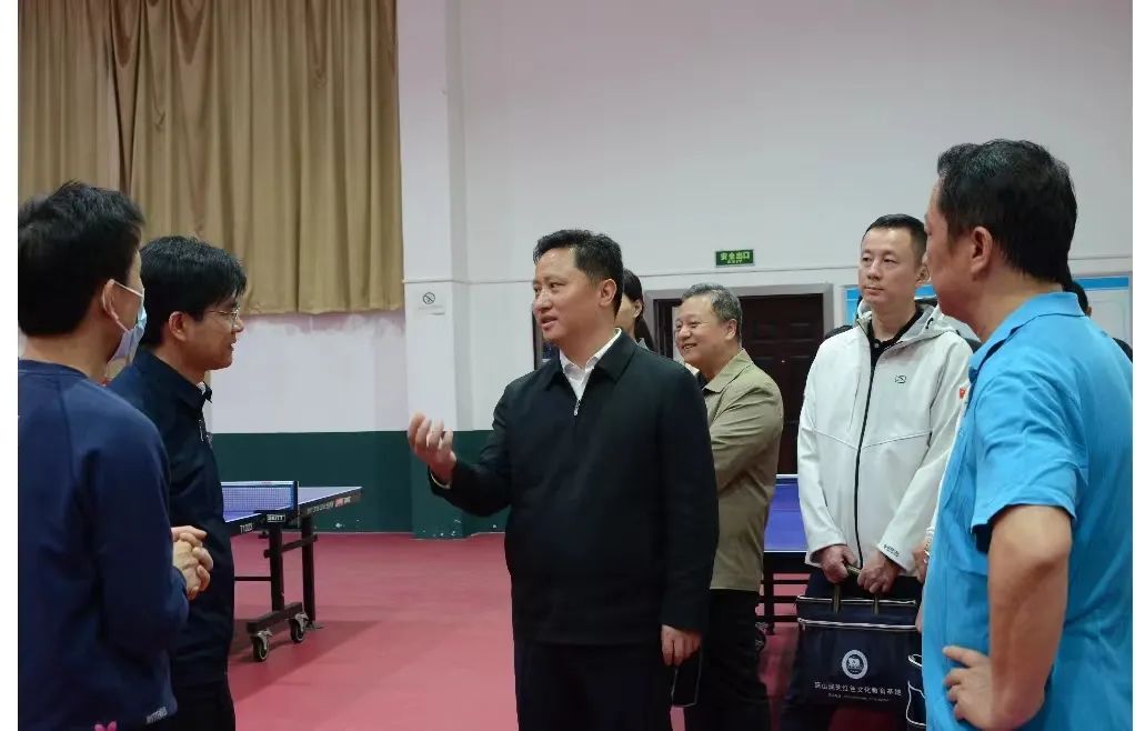 图为团省委书记李志超一行参观乒乓球中心