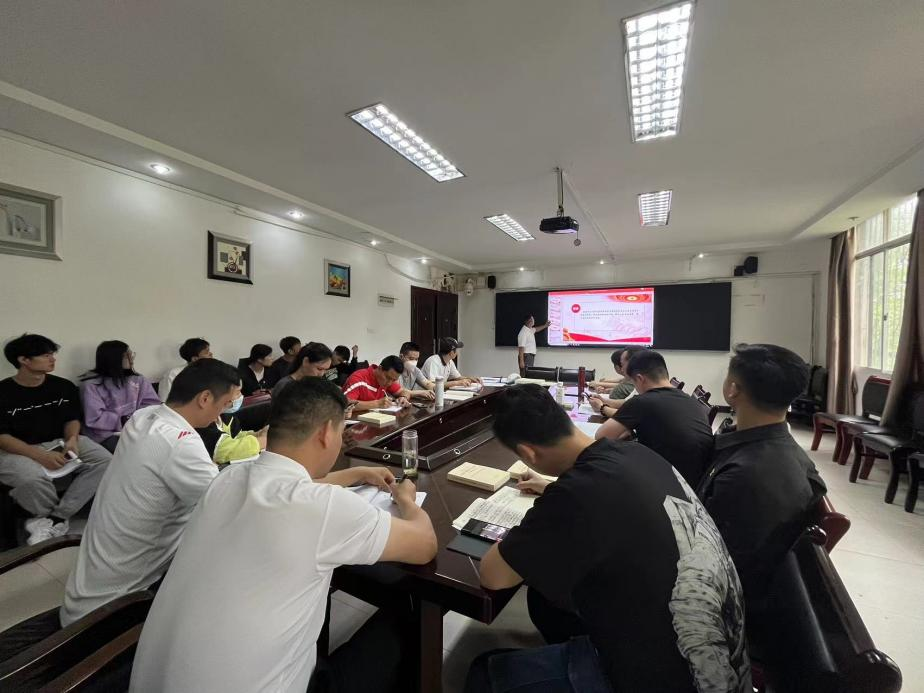 为深入开展学习贯彻习近平新时代中国特色社会主义思想主题教育,5月25日中午,体育休闲与艺术学院党总支组织开展了主题党日活动,活动由体艺学院党总支书记郭剑主持。